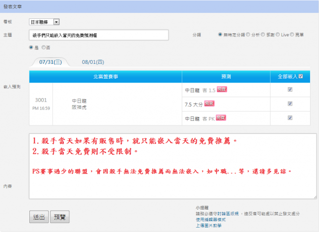 公告 >> [新功\能]發文嵌入預測 - 輕鬆嵌入預測,快速分享預測。