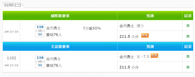 2.中國職籃11/08開放預測