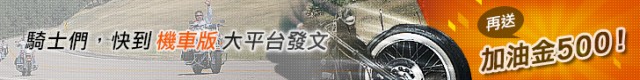 公告 >> 【活動】騎士們緊來唷!發文分享機車大小事,再送"加油金"喔!(得獎名單出爐囉)
