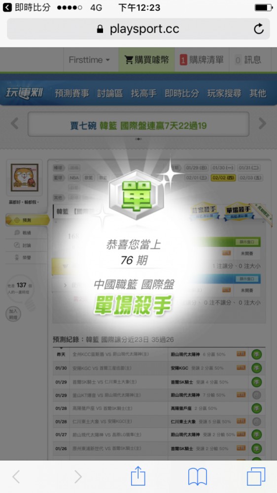 公告 >> ★★★ 第76期 70強單場殺手公布★★★