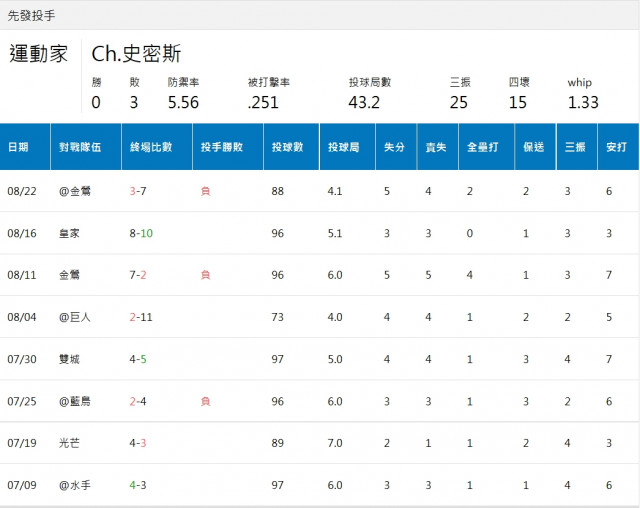 公告 >> 先發投手逐場出賽紀錄上線啦!