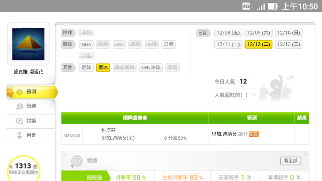 俄冰12/11(一) 23:59 勇士 vs 裏加戴拿模 由於資料來源錯誤,是不存在的比賽,