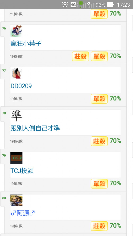 公告 >> ★★★ 第100期 80強單場殺手公布★★★