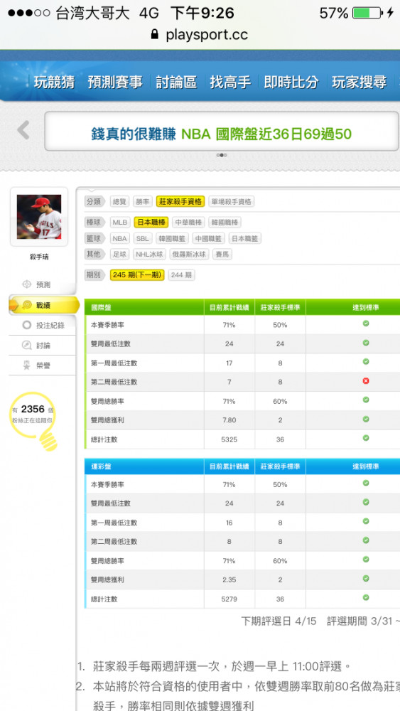 公告 >> ★★★ 第245期 80強莊家殺手公布★★★