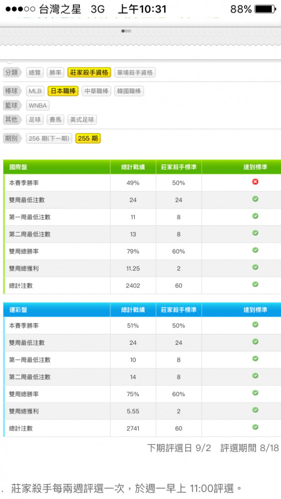 公告 >> ★★★ 第255期 80強莊家殺手公布★★★