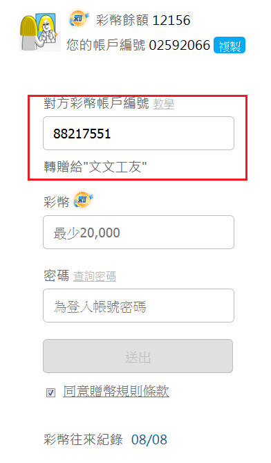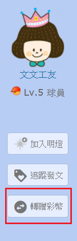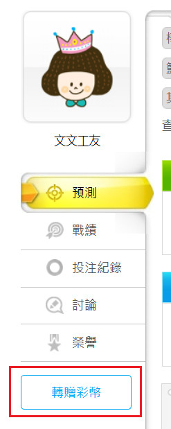 公告 >> 玩競猜新功能:"轉贈彩幣"按鈕來囉~~轉彩變得又快又簡單!