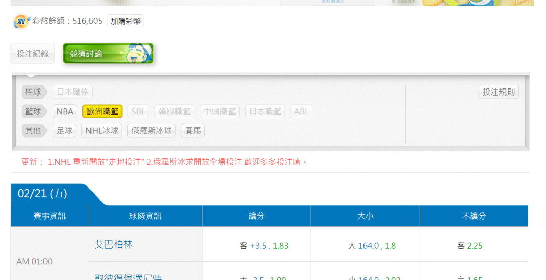 公告 >> 【玩競猜】俄羅斯冰球開放全場投注囉~大家快來一起參與吧!