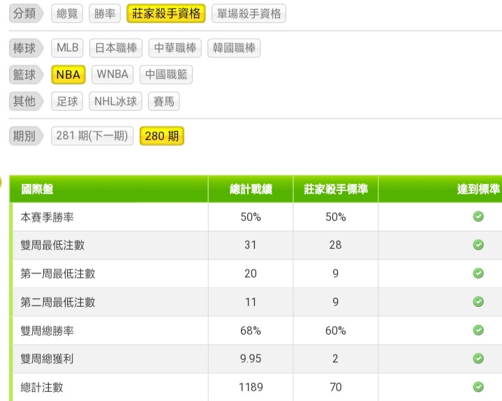 公告 >> ★★★ 第280期 80強莊家殺手公布★★★