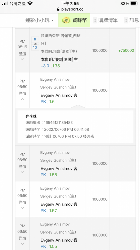 而且剛剛乒乓幾場下完就關盤或鎖盤了