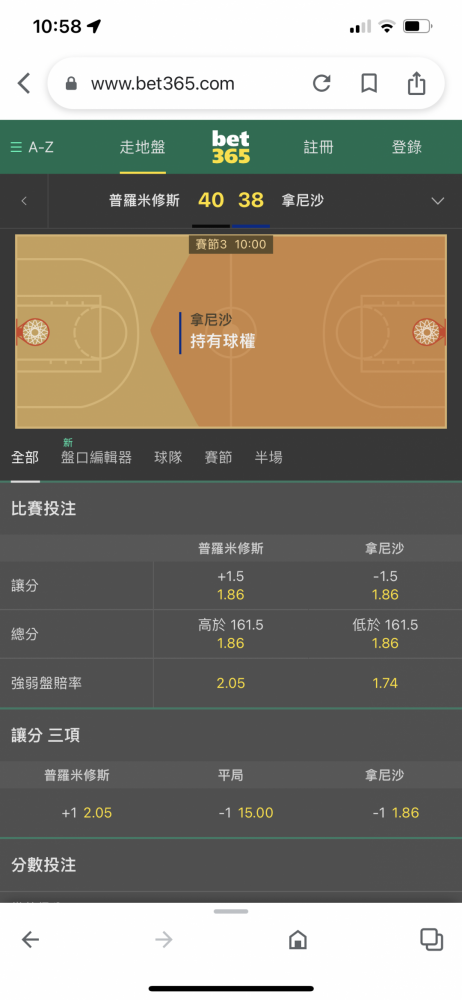 玩競猜 >> 麻煩工友開希臘甲組籃球聯賽走地