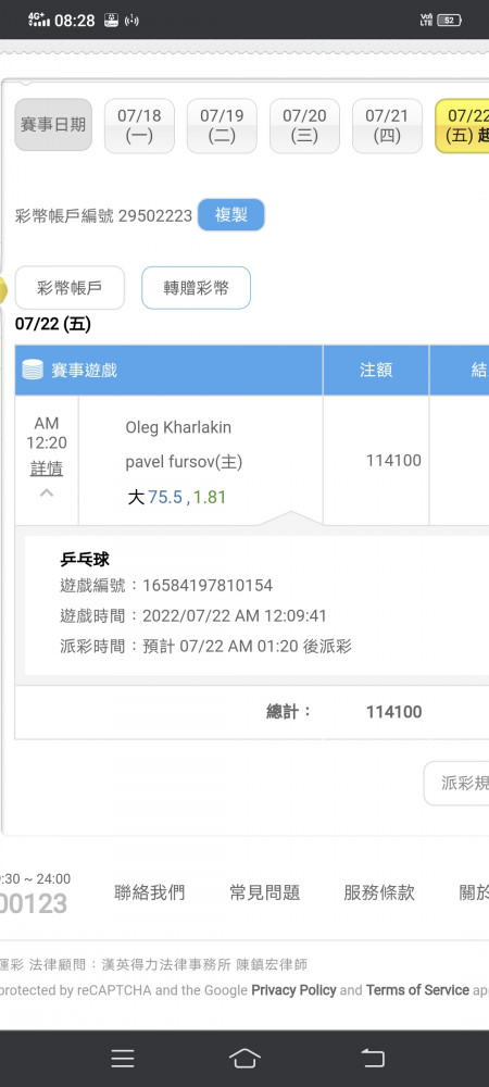 您好:該場賽事已退回遊戲金再煩請確認一下喔。