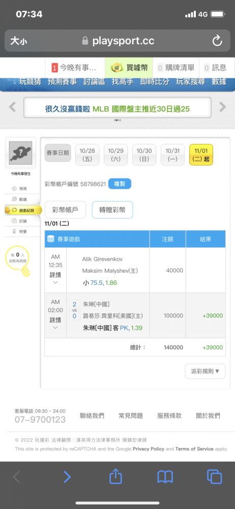 晚上12.30的乒乓球賽事沒有打麻煩處理退幣感恩