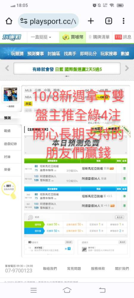 澳洲職籃 >> 10/8主推連過3盤雙盤4過4與上車的朋友們來一次綠油油今天特價優惠殺豬牌喔!