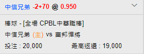 中華職棒 >> 富邦悍將 -江國豪vs中信兄弟(主) -德保拉 歡迎參考
