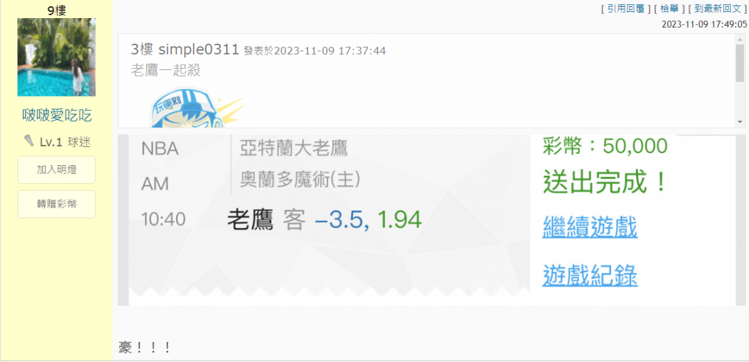 NBA >> 10:30老鷹VS魔術有開單場好下注~雙主推在個人頁沒過免費兩天說到做到~一起飛!