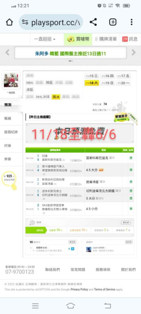 俄羅斯冰球 >> 國際盤近10過9盤11/20再度3/3戰績甚佳特價優惠邀請上車一起殺豬頭領錢爽歪歪!
