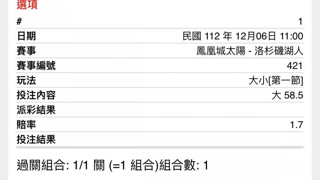 NBA >> 1206 籃球🏀單場 — 421 鳳凰城太陽@洛杉磯湖人…第一節大小