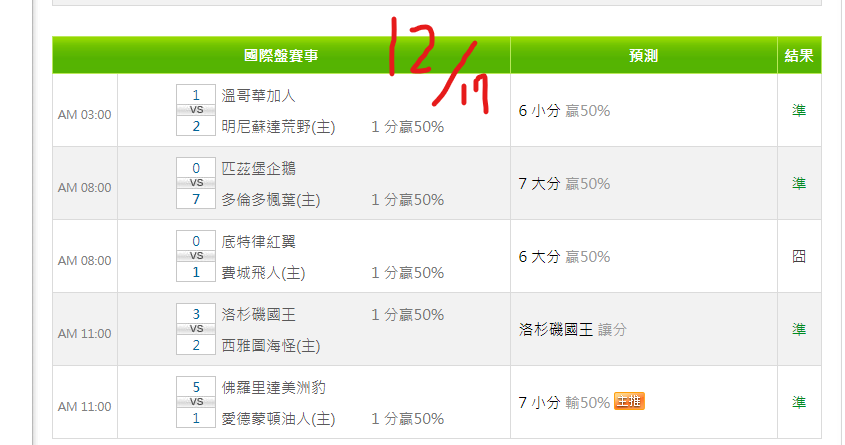 NHL冰球 >> 12/18 NHL分享【今日 5過4】【近2日 9過8】