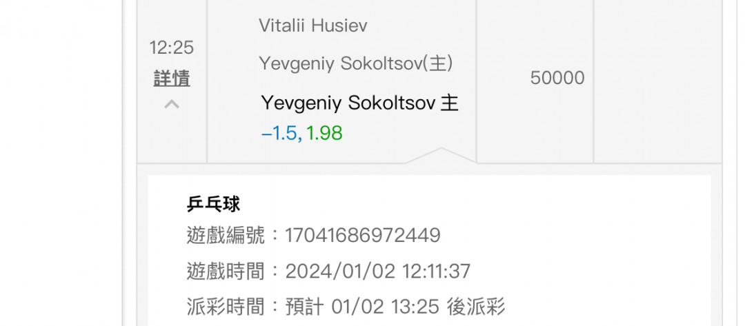 大大您好,該場賽事已派彩完成,謝謝。