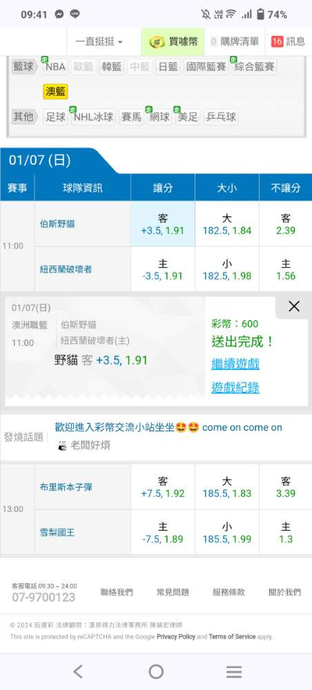 澳洲職籃 >> 國際主推近12/9連過2盤1/6雙盤4/4一樣重點放在1點朋友們一起殺豬!