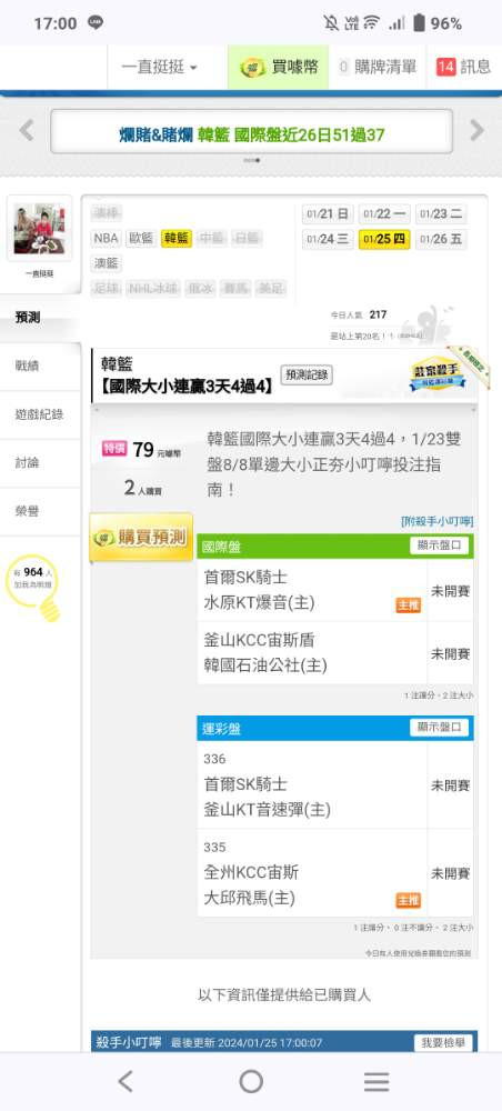 韓國職籃 >> 開賽在即單邊免費1注其他上車殺豬頭!