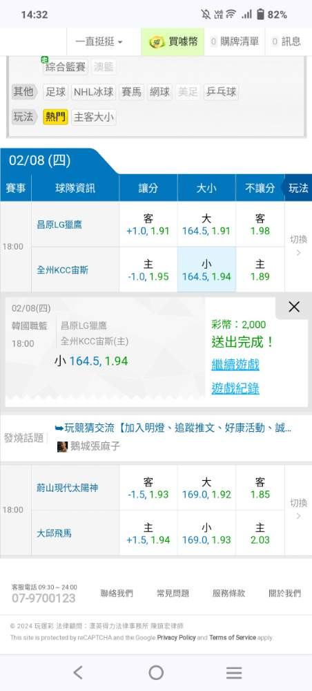 韓國職籃 >> 運彩主推近期超夯連過2盤特價8次今天小年夜原價邀請朋友們上車殺豬頭領紅包!
