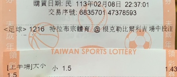 足球 >> 土盃 22:30單場 上半場小於1.5