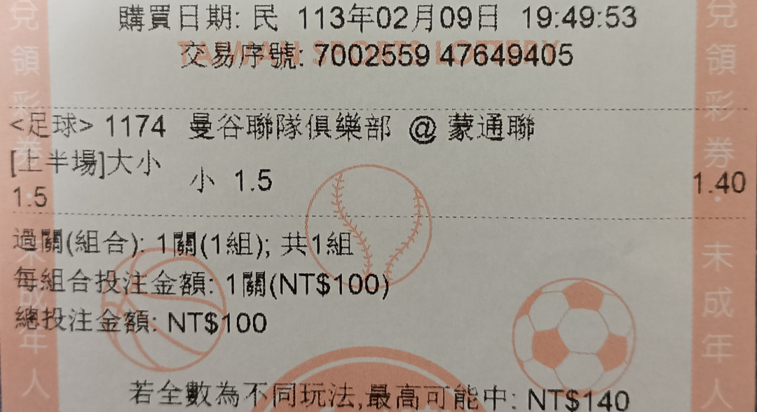 >> 泰甲 單場 上半場小於1.5(2/9)