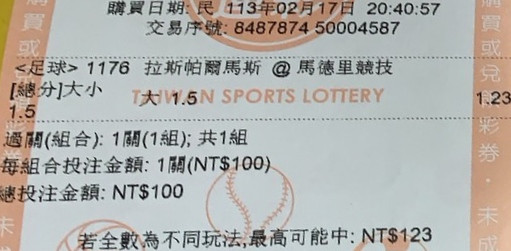 >> 西甲 單場 總分大於1.5