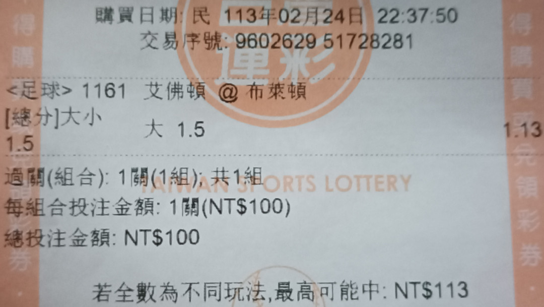 >> 英超 23:00單場 總分大於1.5(2/24)