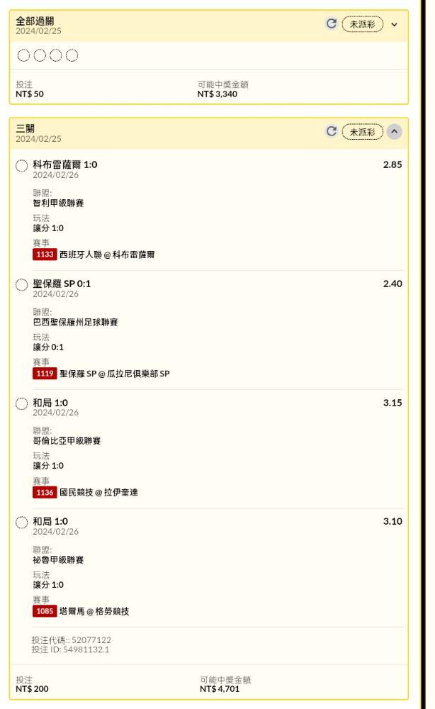 足球 >> 足球半夜早場串關分享4單(8場)