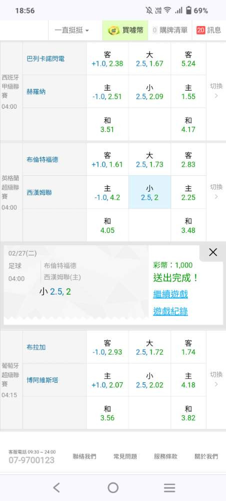 足球 >> 今晚主推上5注小叮嚀有0400福德與西漢姆聯單場投注建議上車殺豬!