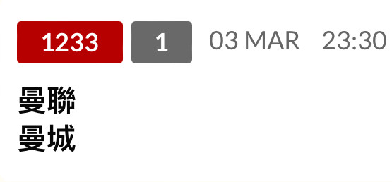 足球 >> 單場 晚上23:30 曼聯/曼城(主推100%)(主推3連勝)(附正確比分推薦)