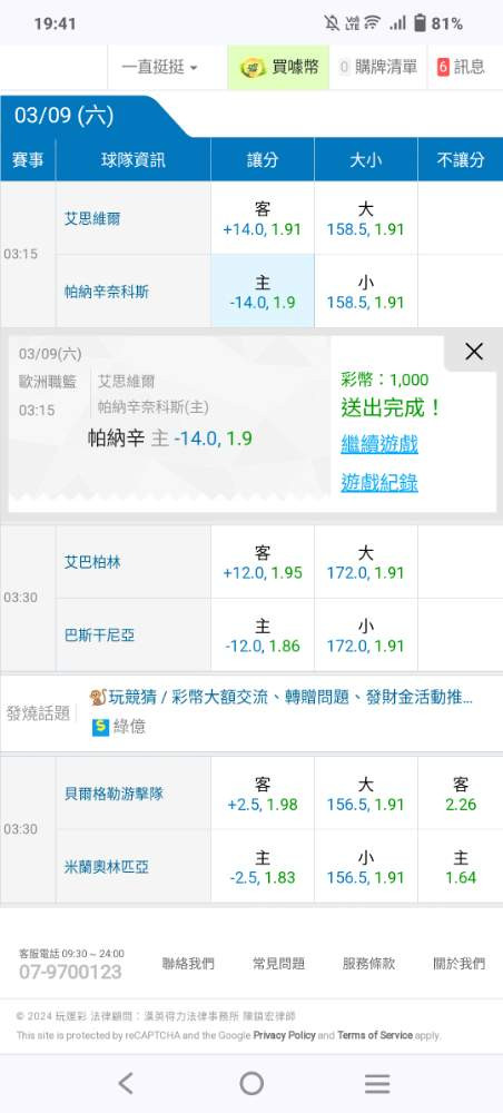 歐洲職籃 >> 國際讓分近11日19過16雙盤主推連過3日邀請朋友們一起殺豬頭領錢爽歪歪!