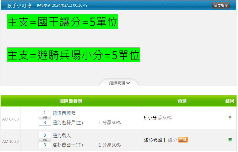 NHL冰球 >> 3/13殺豬單~【今天2過2】【主推近15過11】初盤分享+受讓推薦!