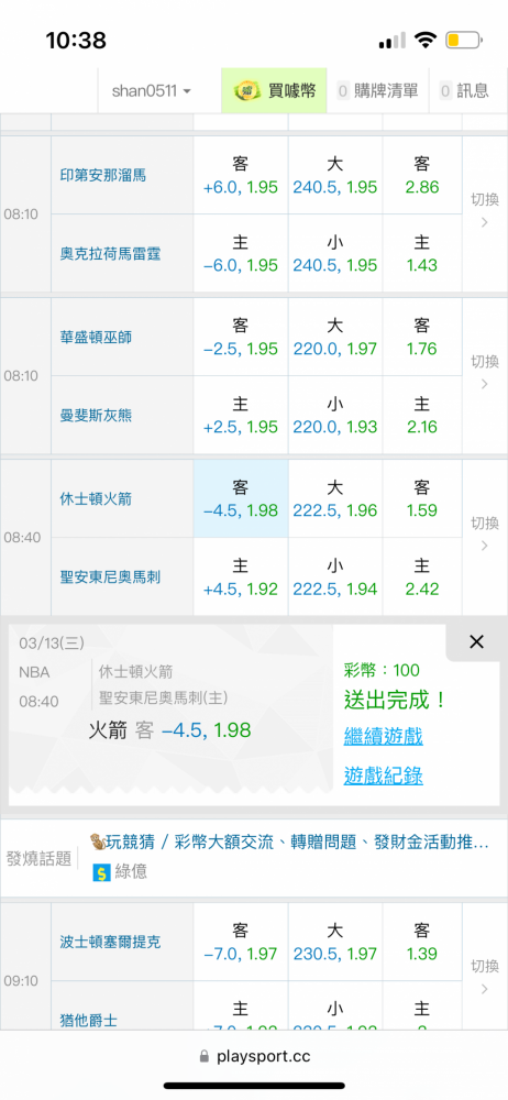 >> 3/13 NBA免費場。3/12 4過4