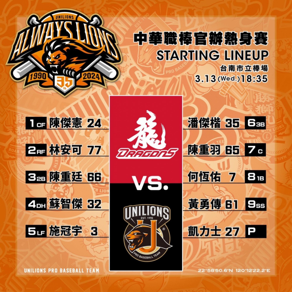>> 熱身賽第一場爽雙方先發