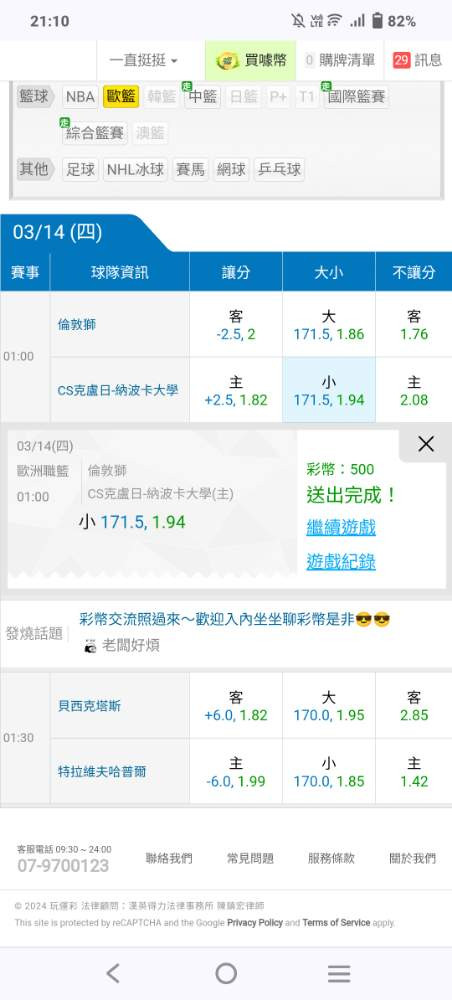 歐洲職籃 >> 國際讓分近12日21過17明天國際主推沒過本週不再販售相信的朋友上車殺豬!