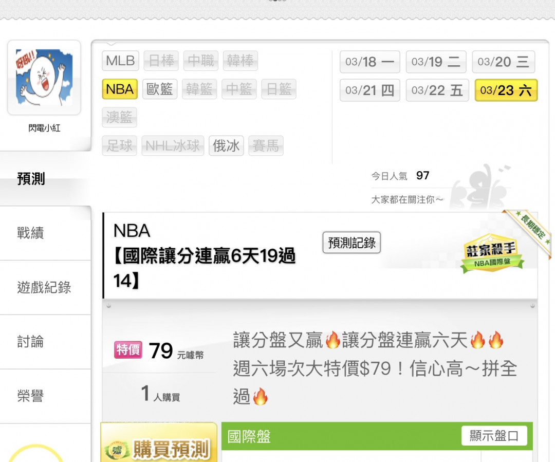 NBA >> 火燙🔥讓分盤又贏🔥《讓分盤連贏六天19過14》🔥週六場次信心高🔥大大的特價$79~
