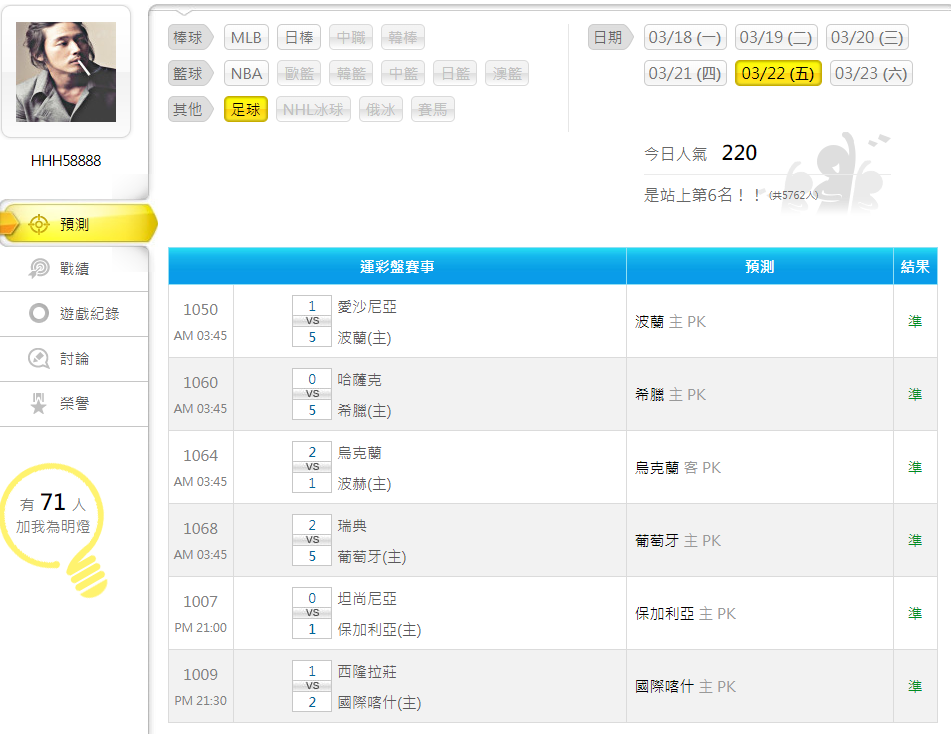 足球 >> 03/22 狗版 足球推薦 初盤&比分