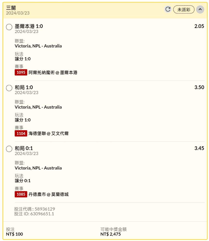 足球 >> 足球下午場讓分串關分享3單(2單4場賽事1單樂透單)