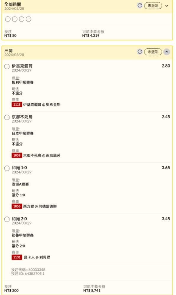 足球 >> 足球讓分串關分享4單(8場賽事)