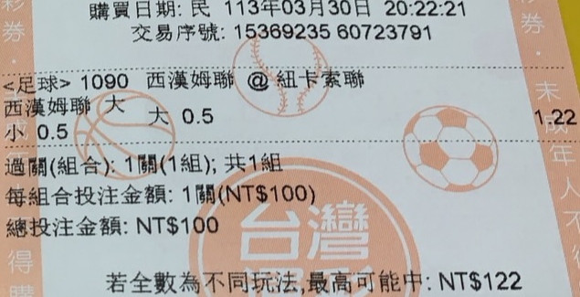 >> 英超 西漢姆聯大於0.5