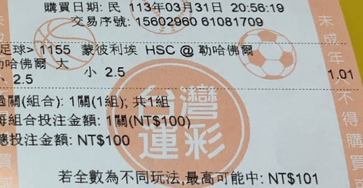 難得看到1.01的賠率。過關,開心~
