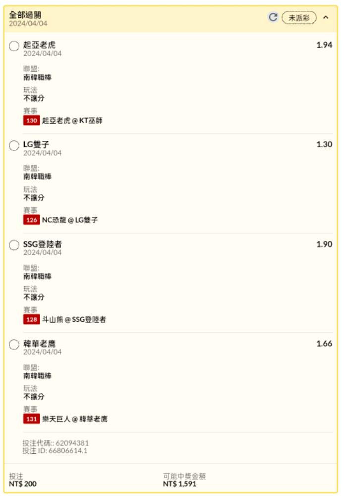 韓國職棒 >> 韓棒試單串關分享2單