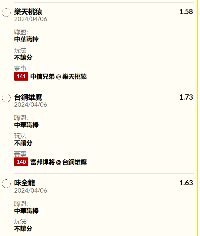 我下了三佰元中華職棒 美棒會下多一點 其它都下個好玩 樂天比較不看法一點 如果忽大有PO中職以他為準 哈!!