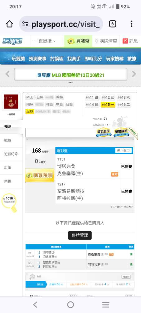 足球 >> 4月15日2過2明天3注邀請朋友們上車一起殺豬頭領錢爽歪歪!