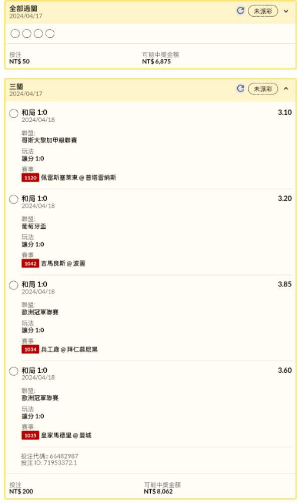 足球 >> 足球試單串關分享2單