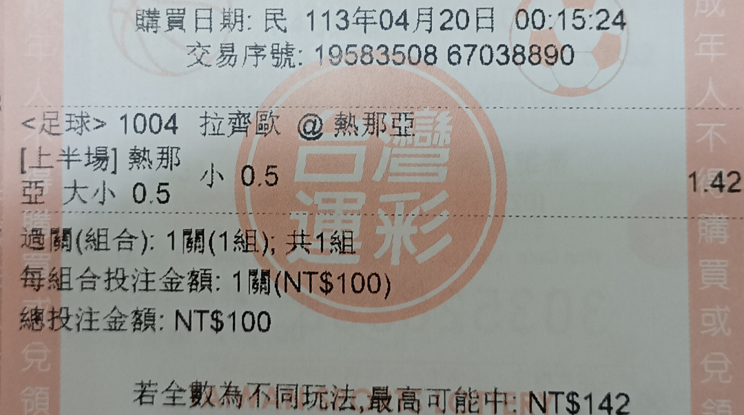 >> 義甲 熱那亞 上半場小於0.5