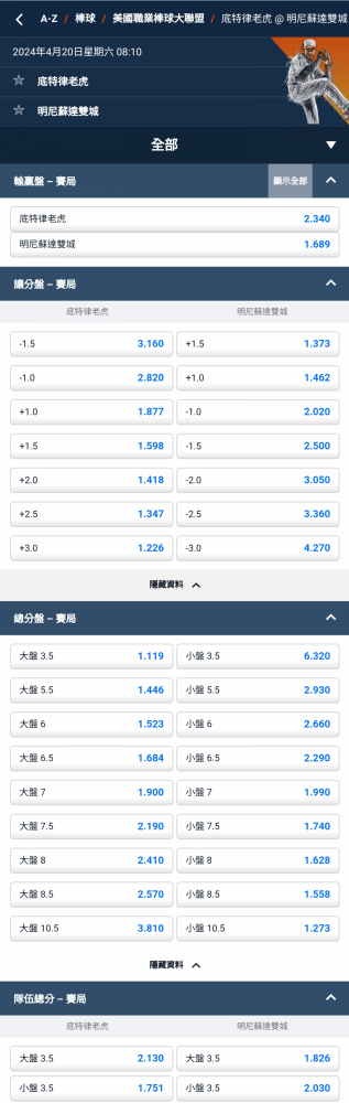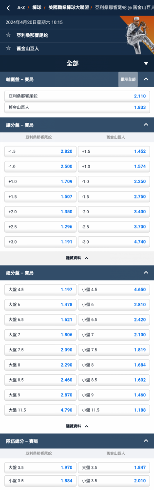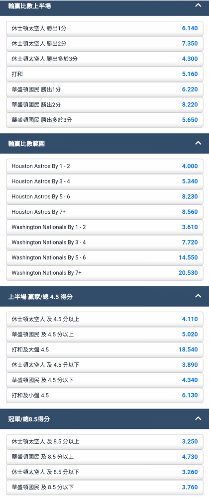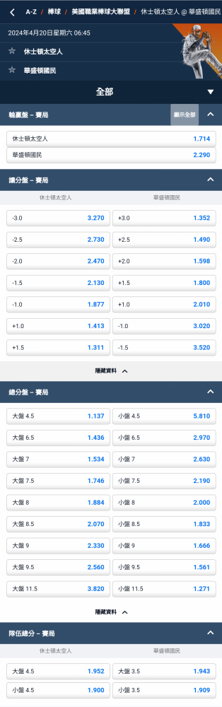 休士頓太空人 及 8.5 分以下 @3.110(D)